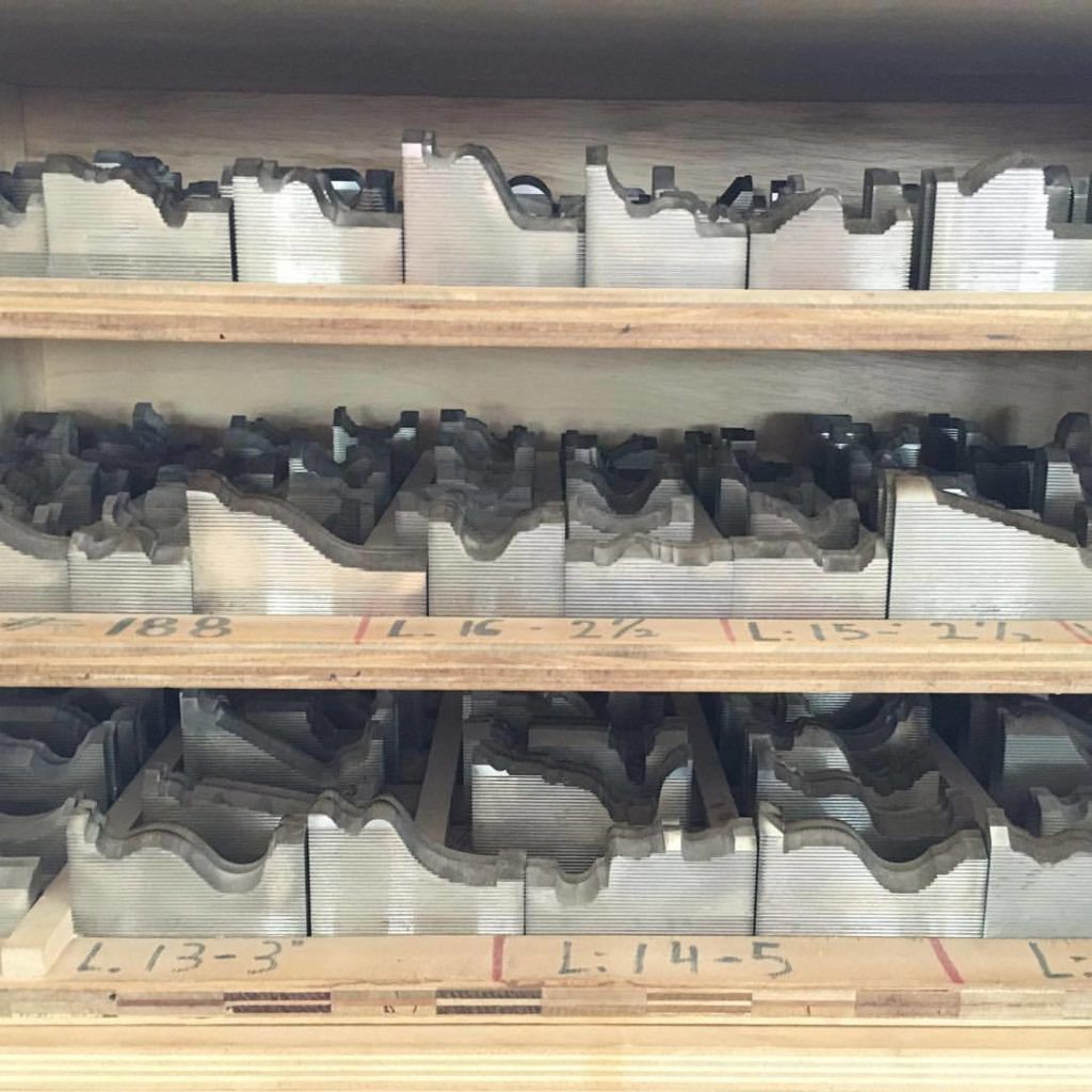 The cutter knives we use to make our profiles. We have over 350 different shapes and can create many more unique ones. #woodworking #pictureframing #machinery #moulding #customframing #framing #pictureframe #picoftheday #design #crafts #carpentry #carpenter (at C&J Picture Frames Inc.)