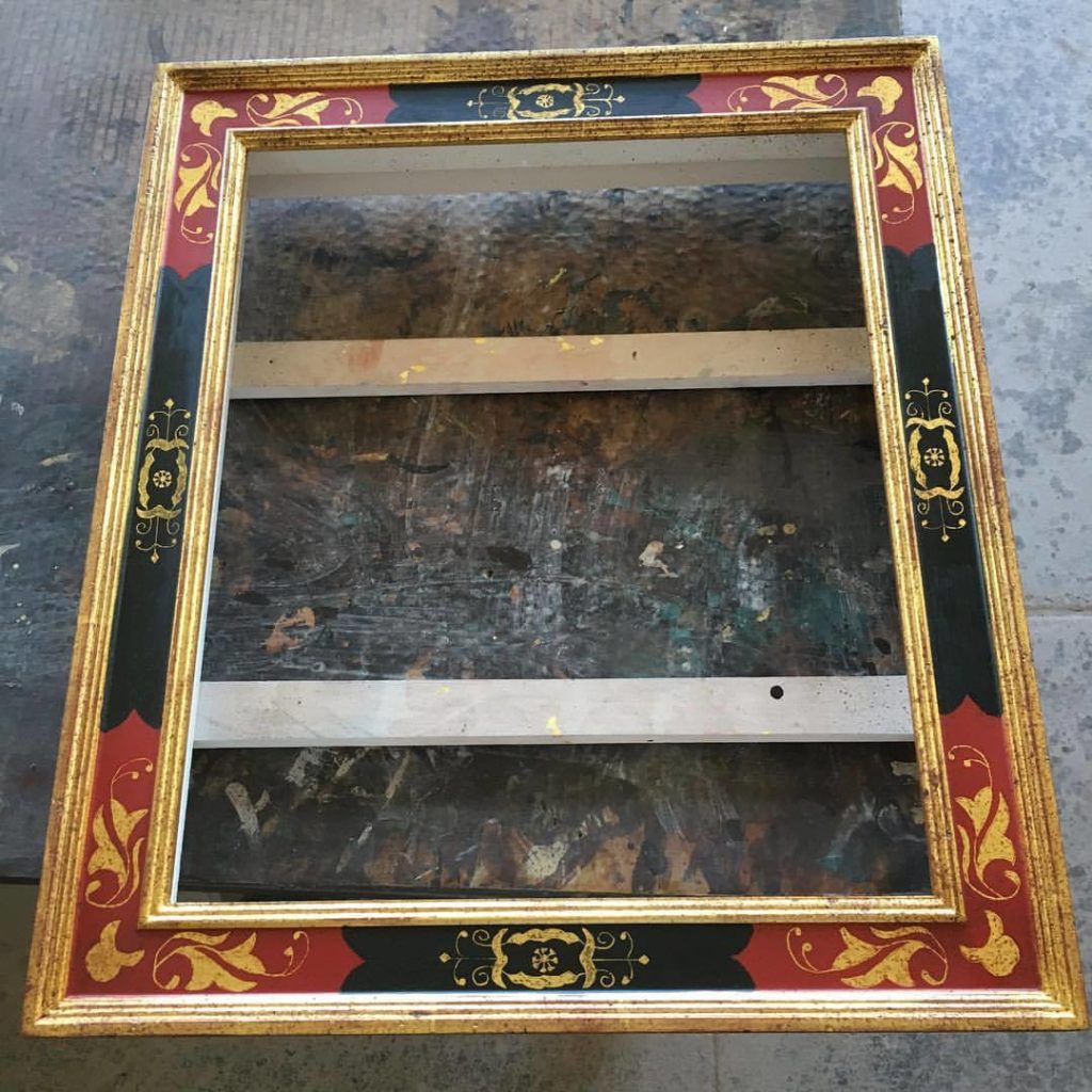 Check our YouTube channel to see how #sgraffito frames like this are made. #22k #gold #framing #customframing #cjframes #frame #art #museum #design #interiors #madeinusa #pictureframes #museumframing #woodworking #decor #interiordesign #artisan #crafts #picoftheday #instaart #instadesign #instadecor #goldleaf (at C&J Picture Frames Inc.)