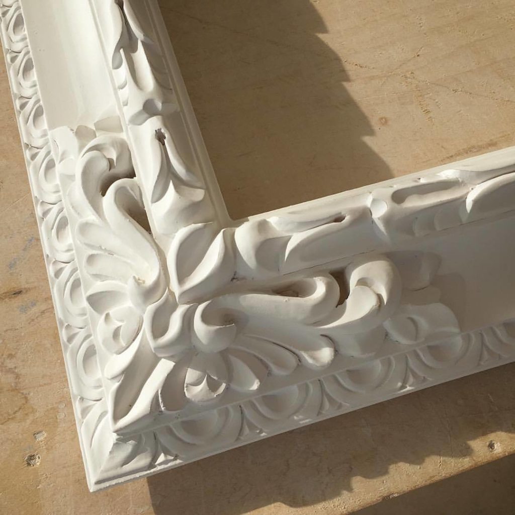 A few coats of #gesso followed by sanding. Ready for gold soon. #woodcarving #framing #customframing #cjframes #frame #art #museum #design #interiors #madeinusa #pictureframes #museumframing #woodworking #decor #interiordesign #artisan #crafts #instaart #instadesign #instadecor #picoftheday #handmade #pictureframe (at C&J Picture Frames Inc.)