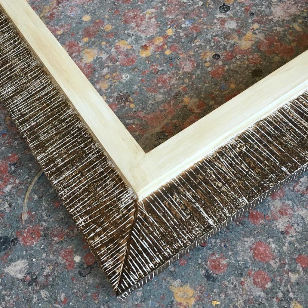 A closer view of the previous frame. This one took a few years to take off but now we are making them regularly. It’s great for mirrors but I’ve been most impressed when seeing it used on black-and-white photography. #framing #customframing #cjframes #frame #art #museum #design #interiors #madeinusa #pictureframes #museumframing #woodworking #decor #interiordesign #artisan #crafts #instaart #instadesign #instadecor #picoftheday #handmade #photography #modern (at C&J Picture Frames Inc.)