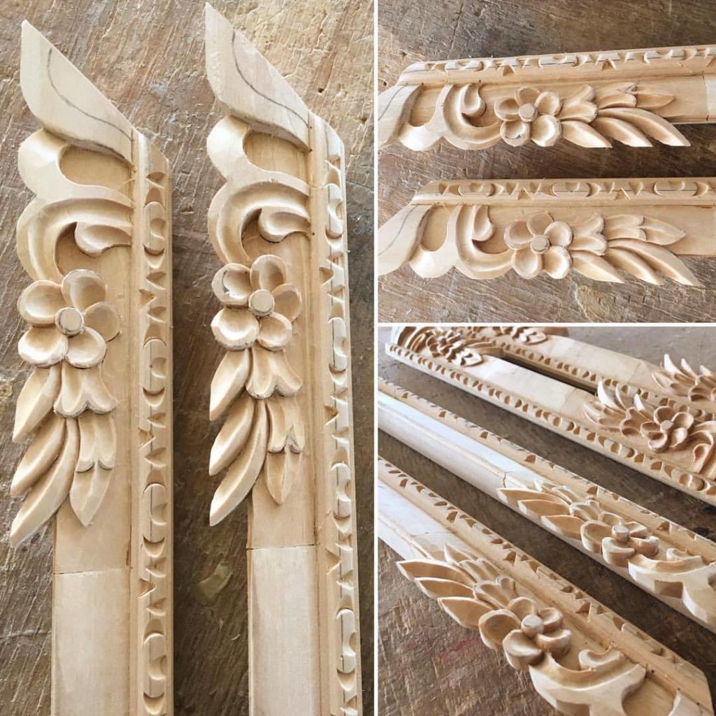 Our smallest #louisxiii frame after carving. It’s just over 1 inch wide. This one will be finished with 22k gold. #handcarved #woodcarving #framing #customframing #cjframes #frame #art #museum #design #interiors #madeinusa #pictureframes #museumframing #woodworking #decor #interiordesign #artisan #crafts #instaart #instadesign #instadecor #picoftheday #handmade #louis13 (at C&J Picture Frames Inc.)
