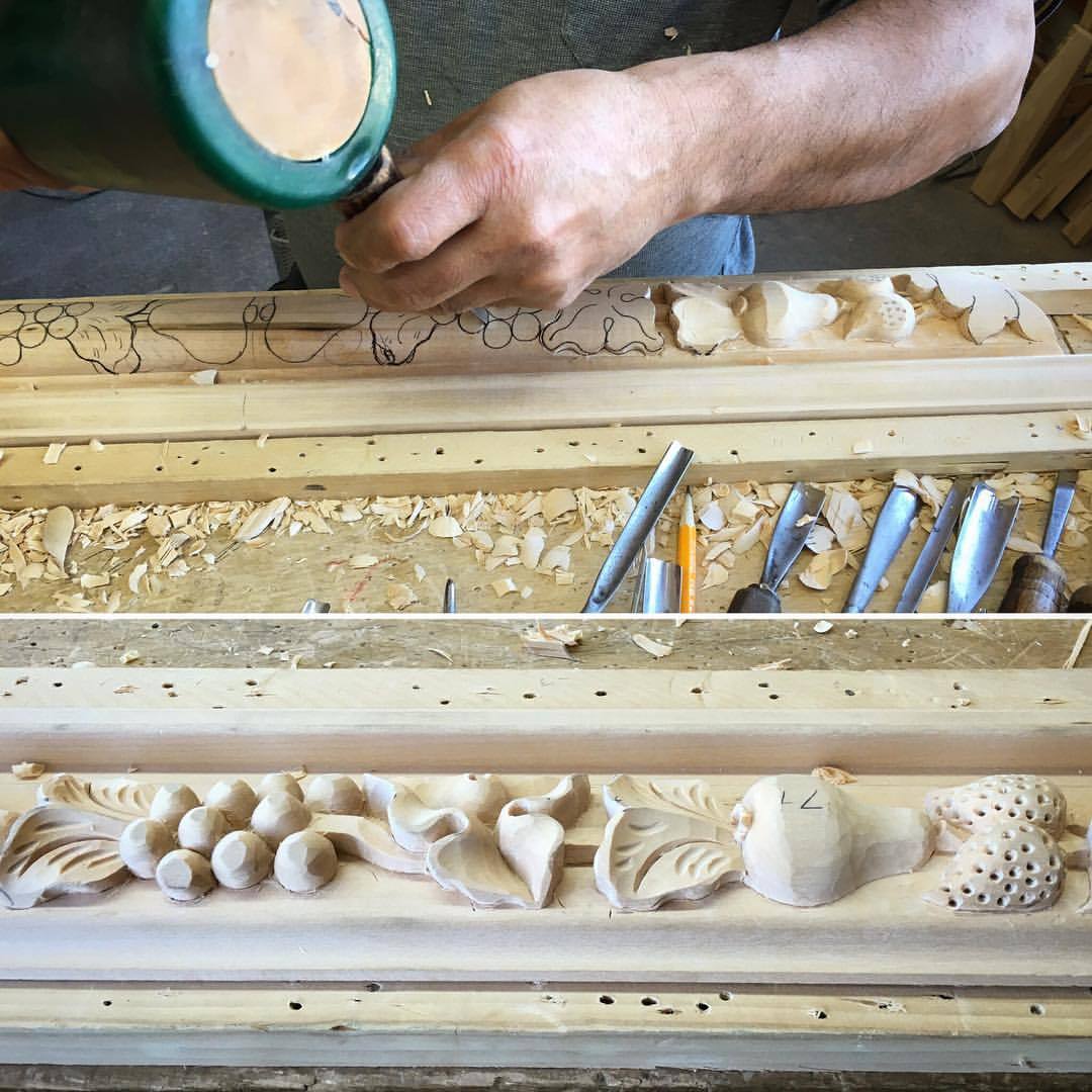 The carving is nearing completion on our PF05 frame. I’m liking the layout of this carving to fit this smaller size frame. Much more work ahead. Share This Twitter Facebook LinkedIn Email