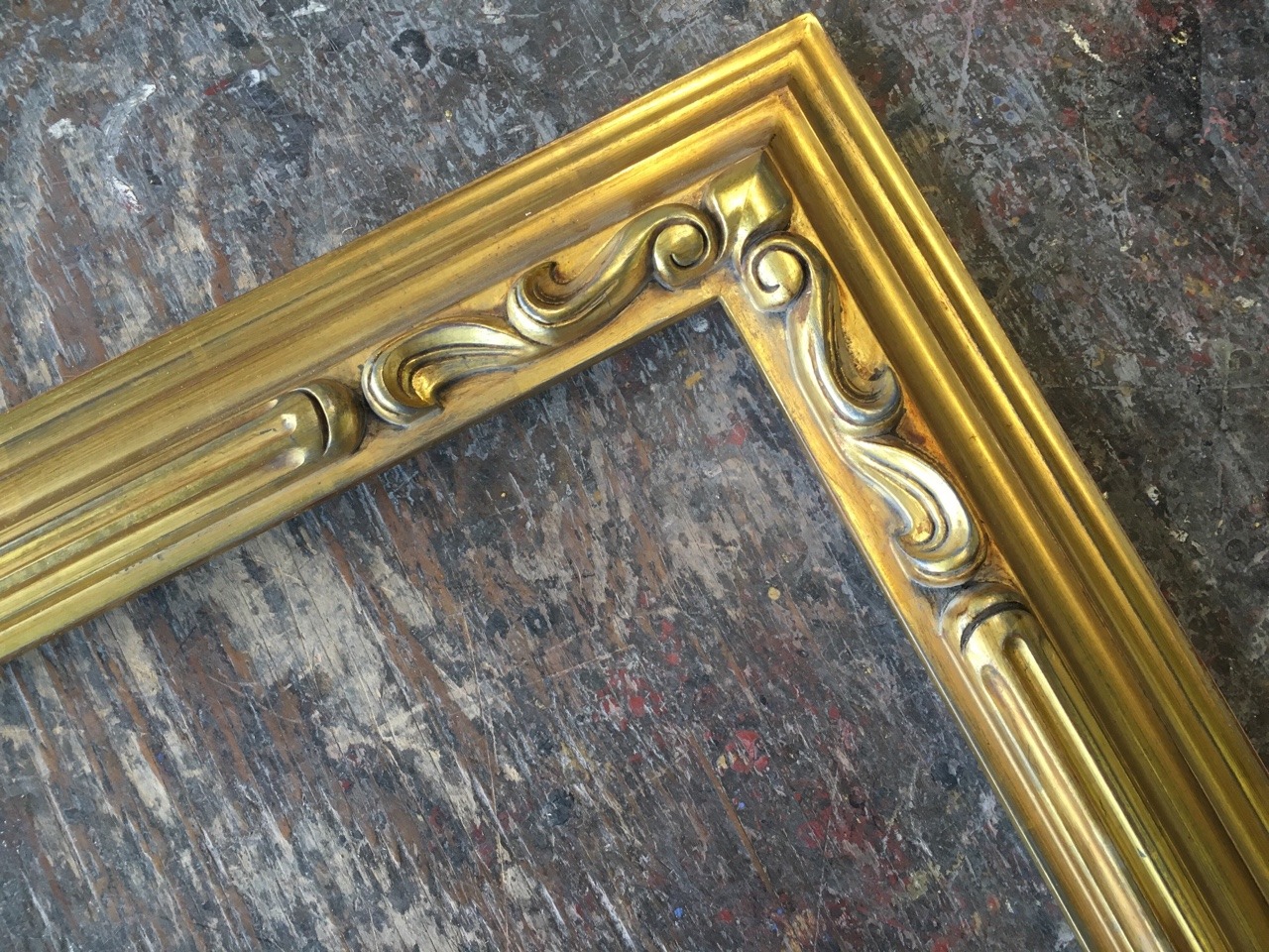 More pictures of this hand carved Spanish frame in 22k gold over blue clay. These are of the finished frame. Share This Twitter Facebook LinkedIn Email